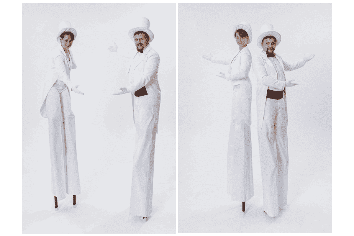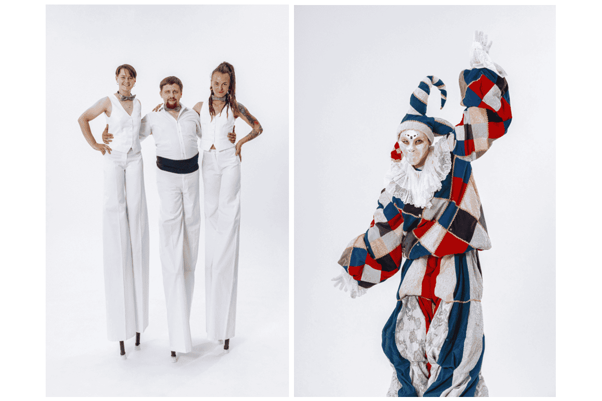 в команде работают опытные ходулисты, которые не только умеют эффектно двигаться, но и взаимодействовать с публикой.